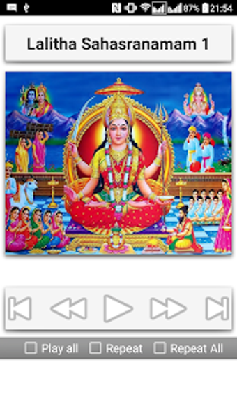 Lalitha Sahasranamam is een multimedia-app beschikbaar op Android die zich richt op liefhebbers van devotionele muziek. Deze app biedt gebruikers de mogelijkheid om de Sri Lalitha Sahasranama stotram te beluisteren in vier verschillende audio-varianten. Het is een ideale keuze voor degenen die deze spirituele tekst willen ervaren in een muzikale vorm, met een focus op toegankelijkheid en gebruiksgemak.